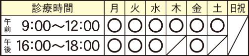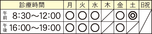 ※初診の受付は11時まで。再診の受付は11時30分まで △午後診をご希望の場合は代表までご連絡ください。