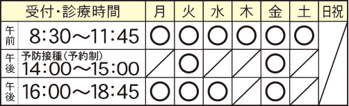 ※土曜12:00~14:00内分泌診療と予防接種(予約制) 中ノ202 小児科