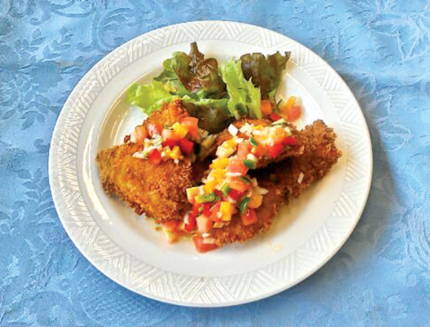 鯵の字は“美味しすぎて参りました~“からできたと言われています。揚げたての手作りのフライに、これから美味しくなる野菜、新玉ねぎやトマト・ピーマン・パプリカなどあるもの色々を細かく切ってレモン汁やタバスコなどに絡ませたサルサソースが良く合います。