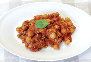 メキシコのお豆料理。スパイシーな風味が食欲をそそる、お豆とお肉の煮込み料理です。コーンチップス(タコス)やトルティーヤなどにのせて食べるのが一般的ですが、パスタのソースにしたりご飯にのせたり生野菜と一緒に食べるなど手軽にご利用ください。栄養たっぷりのひよこ豆ですが、乾物を茹でたり、大豆を代用してもいいでしょう!