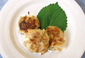 玉ネギとえのきにAの片栗粉をからませてから、Bとミンチを合わせてしっかり混ぜ、ひじきも更に水気を絞って加えよく練り合わせ、30個に分けて丸めておく。 |