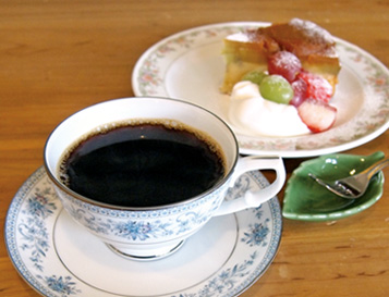 延髄斬り※1を食らったような衝撃でっせ!ただ苦いだけ、濃いだけっていうのはあるんやけど、なかなか「コレはっ!」っていうのんが…。やっと理想のコーヒーに巡り合えましたがな。パンチが効いとるだけやなく、後味がスッキリしとる何ともいえん美味しさです。黒光りするくらいに深煎りされたコーヒー豆は、京丹波町のann's coffeeさんのもの。それを1杯ずつ、オーナーの牧孝子さんが美味しくなるようにと気持ちを込めて、ハンドドリップ※2で丁寧に淹れてはります。